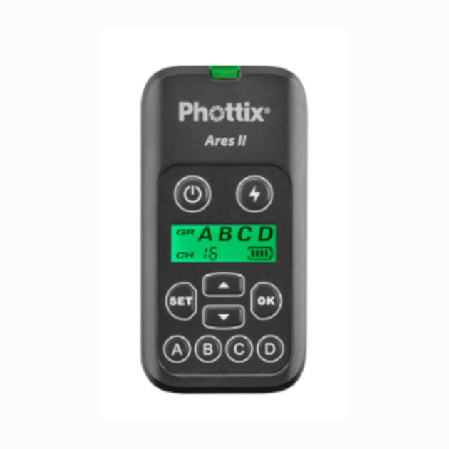 El transmisor de flash inalámbrico ARES II de PHOTTIX se utiliza en combinación con un receptor para disparar flashes, compactos e iluminación de batería de forma inalámbrica en cualquier situación.