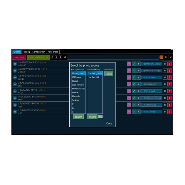 El Software Studio Creative de DiLand es un software para la producción fotográfica multi-formato, que te permitirá agilizar notablemente el flujo de trabajo para la impresión de tus pedidos de fotografías. Podrás crear pedidos y edítalos de manera rápida y eficiente, ya sean grandes lotes de copias o gran número de pedidos. Esta versión Creative, te permite tanto crear pedidos como un operador de producción, como también realizar pedidos al estilo de un kiosco fotográfico.
