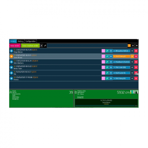 - Podrás gestionar la producción y el envío de trabajos/pedidos a las impresoras o guardarlos en carpetas.