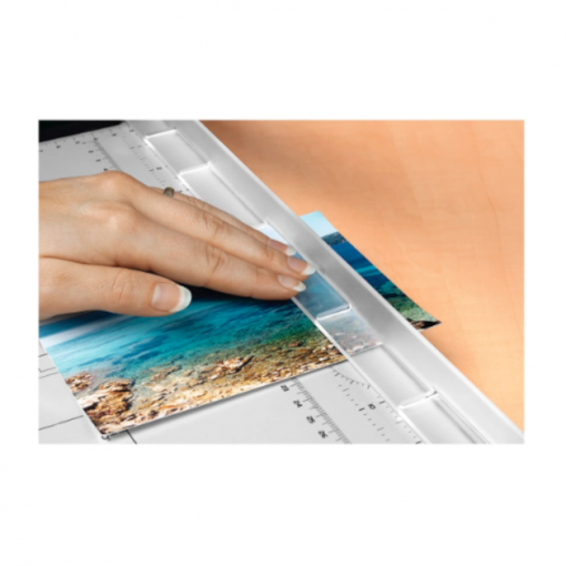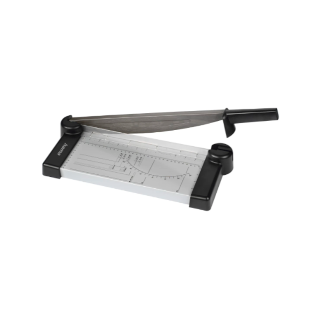 - Cómoda cizalla de palanca para papel y láminas.